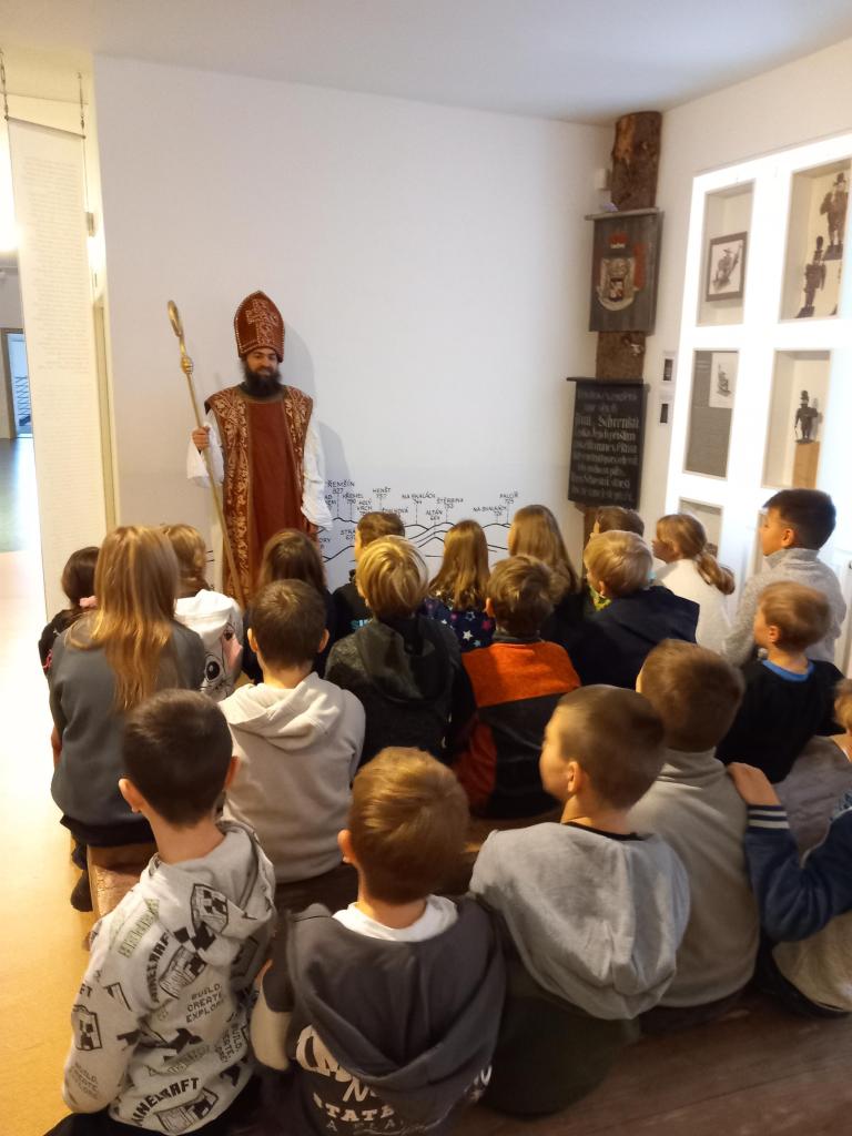 Děti se zamýšlely nad významem adventu, připomněly si staré tradice a vydaly se na adventní procházku muzeem. Na ní potkaly svatého Ondřeje, Barboru, Mikuláše a Lucii. Každý ze světců jim prozradil, kdy má svátek, něco ze svého života a ukázal atributy, podle kterých ho poznají. Děti si vyzkoušely staré, většinou již zapomenuté hry, kterými se mladí bavili dříve. A tak holky točily šátek, aby jim sv. Ondřej prozradil, jestli se brzy vdají, tajemné hrnečky všem ukázaly jejich budoucnost a svaté Barborce pak pomáhaly zalít třešňové větvičky. Mikuláši děti zarecitovaly básničku a ve světničce je překvapila svojí návštěvou Lucie se zobákem. Společně si děti vytvořily starou českou vánoční dekoraci třasolku. Její vůně - jablíčka, hřebíčku a rozinek – připomněla, že Vánoce jsou již blízko.