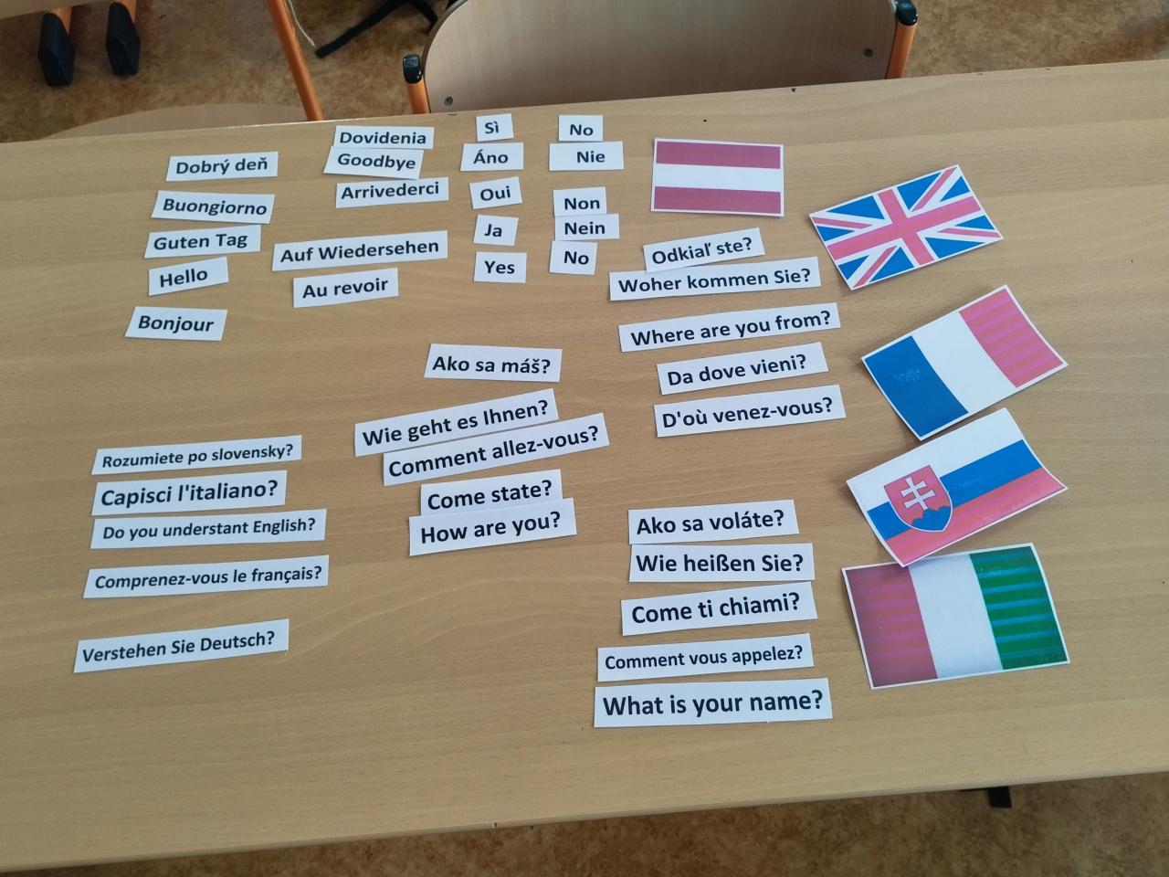 V pondělí nás čekal náš sousední stát - Slovensko. Pro 1. stupeň byl připraven Slovakia passport s obrázky a základními informacemi. Žáci 2. stupně řešili vědomostní kvíz. V úterý jsme se seznámili se zajímavostmi našeho jižního souseda – Rakouska. Žáci vyplňovali křížovky a 2. stupeň navíc skládal anglické otázky ve správném pořadí. Středeční den patřil Francii a její kultuře, jazykovým frázím i typickým francouzským znakům. Ve čtvrtek nás okouzlila Itálie. Učili jsme se slovní zásobu pomocí ingrediencí na pizzu. V 8. a 9. třídě vznikl Word Cloud s odpověďmi na otázku „What do you know about Italy?“ Mladší žáci pracovali s myšlenkovou mapou. Žáci 1. a 2. ročníku v rámci kroužku angličtiny vytvářeli papírovou pizzu s vystříhanými ingrediencemi. Pátek patřil Velké Británii. Žáci ve skupinách vytvářeli plakáty o Anglii, na nichž uvedli informace o vlajce, hlavním městě, kulturních památkách i tradičním jídle. Žáci 3. třídy vybarvovali medvídka Paddingtona, typický symbol Velké Británie, anglicky si procvičili barvy na vlajkách daných států a seznámili se s hlavními městy. Ve 4.B pracovali ve dvojicích - žáci už Paddingtona kreslili a doplňovali k němu základní fráze v pěti různých evropských jazycích. V 5. třídě si poslechli píseň Voices of Europe a pracovali s jejím textem. Během týdne jsme si povídali o daných státech a zhlédli i tematická videa, která nám přiblížila reálný život, památky, zvyky i zajímavosti zvolených států. 6. a 7. ročník pracoval na projektu, při kterém přiřazoval základní věty ke státním vlajkám a rozvíjel jazykovou i kulturní gramotnost. 8. a 9. třída si vyzkoušela své znalosti formou interaktivních kvízů tematicky zaměřených na jazykovou různorodost Evropy. Naši nejmenší prvňáčkové vybarvovali vlajky. Žáci 2. třídy se do projektu zapojili vybarvováním státních vlajek, ze kterých v hodině VV vytvořili koláž. Během týdne vytvářeli výstavy suvenýrů, různých předmětů a fotografií, které se vztahovali k vybraným státům. Chtěli bychom poděkovat rodičům za aktivní spolupráci.