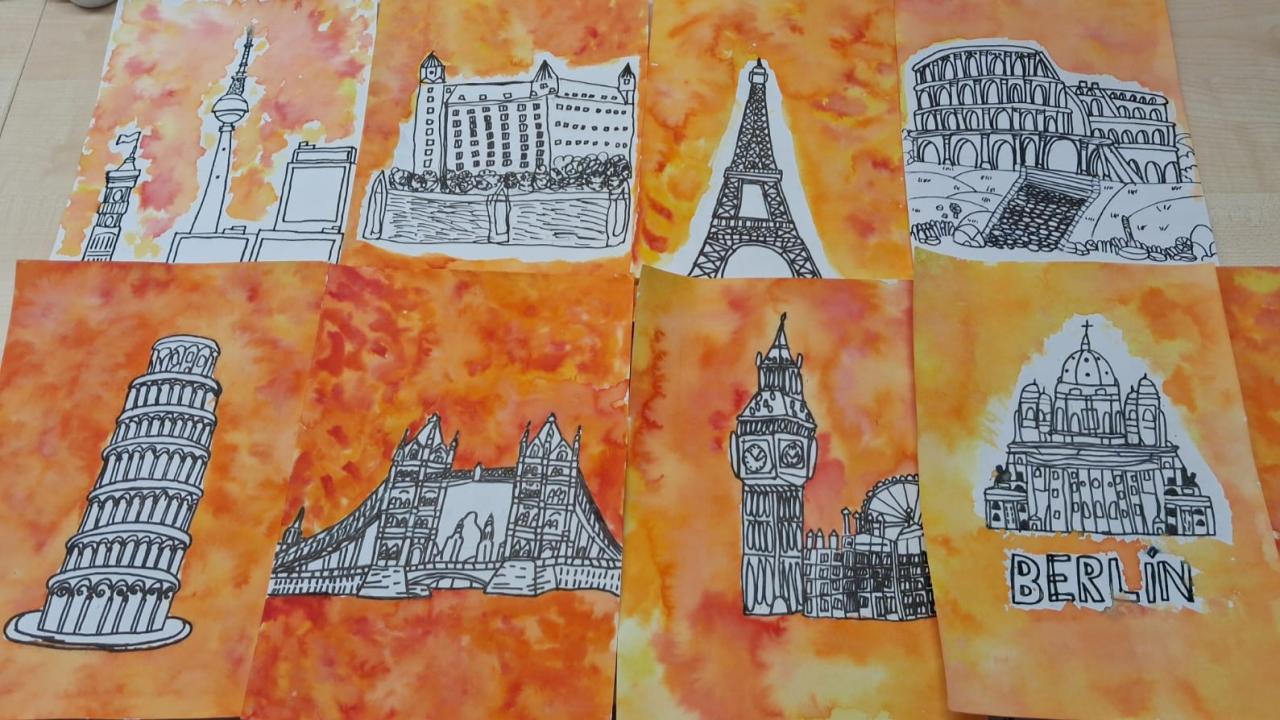 V hodinách hudební výchovy se žáci seznamovali se státními hymnami i známými skladbami daných zemí, v pracovních činnostech a výtvarné výchově tvořili vlajky a skládali papírové stavby. Typické stavby, jako je Tower Bridge v Londýně nebo Eiffelovu věž v Paříži, i malovali. V českém jazyce vypracovali myšlenkové mapy.