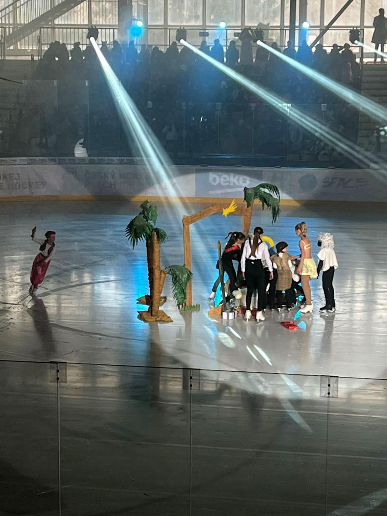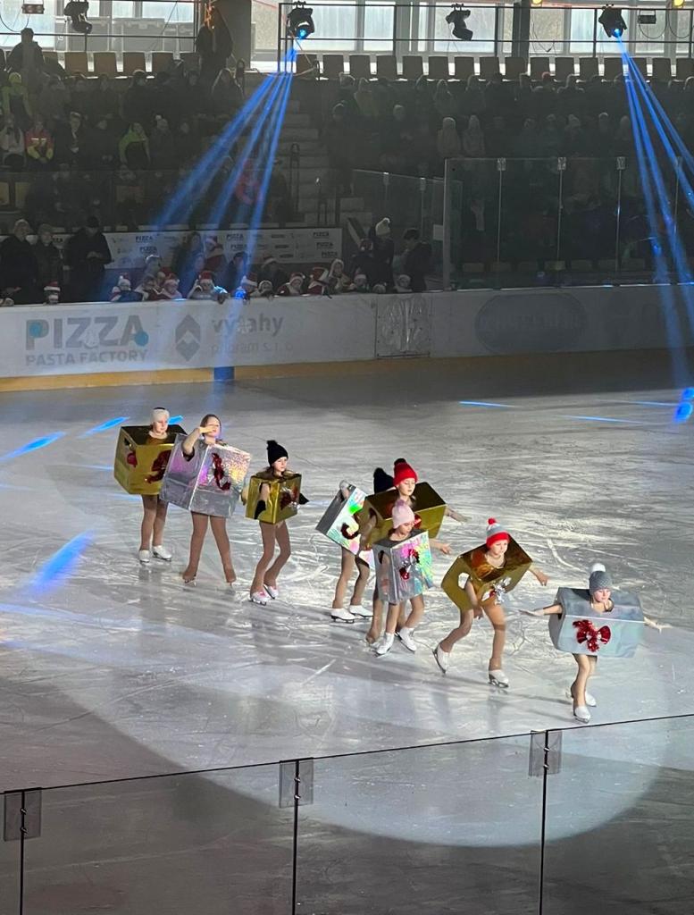 Na ledě nám Klub ztvárnil příběh narození Ježíška, bruslili tu pasáčci s ovečkami, zajíčci, Tři králové a chvíli i samotný Ježíšek v podání malé krasobruslařky. Zároveň se tu objevily sněhové vločky, perníčky, ale i děti znázorňující vánoční dárky. Připomněli jsme si vánoční tradice v jiných zemích.