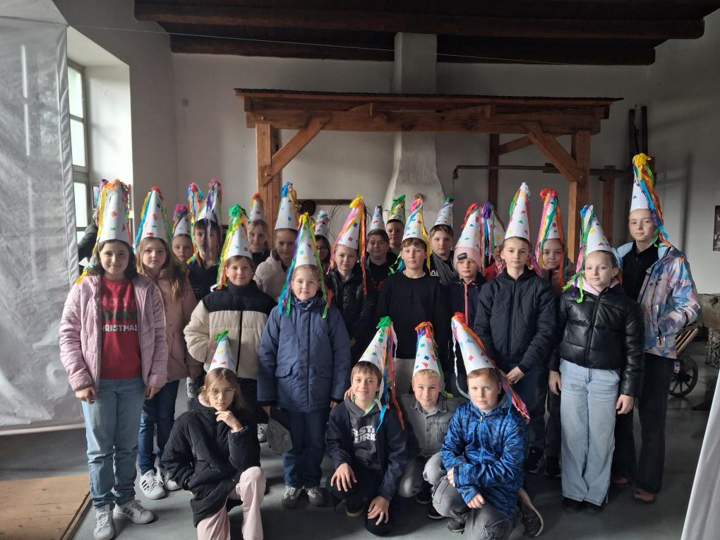 Program byl rozdělen do několika částí. V úvodu žáci rozlišovali symboly Vánoc a Velikonoc. Připomněli si masopustní období jako pomyslný most mezi těmito svátky. Aktivně se zapojili do různých her, např. na honěnou, nebo si za doprovodu říkanek házeli „horké koblihy“. První aktivity proběhly v nedaleké stodole. V hlavní expozici pak děti pracovaly ve skupinkách, kde se seznamovaly se šesti postními nedělemi a své poznatky poté prezentovali ostatním. Nechybělo ani povídání o velikonočním pečivu. To si žáci umotali a lektorky jim ho následně upekly. Děti si prohlédly i velikonočně vyzdobenou světničku, ve které jsme si společně vysvětlili pojmy a symboly, které se vážou k Velikonocům. Všichni si s nadšením užili rachtání řehtačkami. Součástí návštěvy byla i prohlídka výstavy výtvarných prací žáků Základní školy Jakuba Jana Ryby a Speciální základní školy v Rožmitále pod Třemšínem.