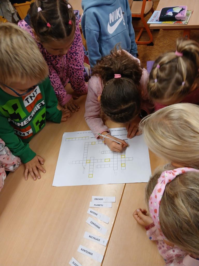Do projektu Recyklohraní se s nadšením zapojili také prvňáčci. Jejich úkolem bylo vyplnit recyklační rozcvičku a vytvořit vlastní labyrint s tématem třídění elektroodpadu. Děti si nejprve povídaly o tom, proč je třídění důležité a poté se pustily do vytváření cest, slepých uliček i správných tras vedoucích k barevným kontejnerům. Vznikly tak krásné, kreativní