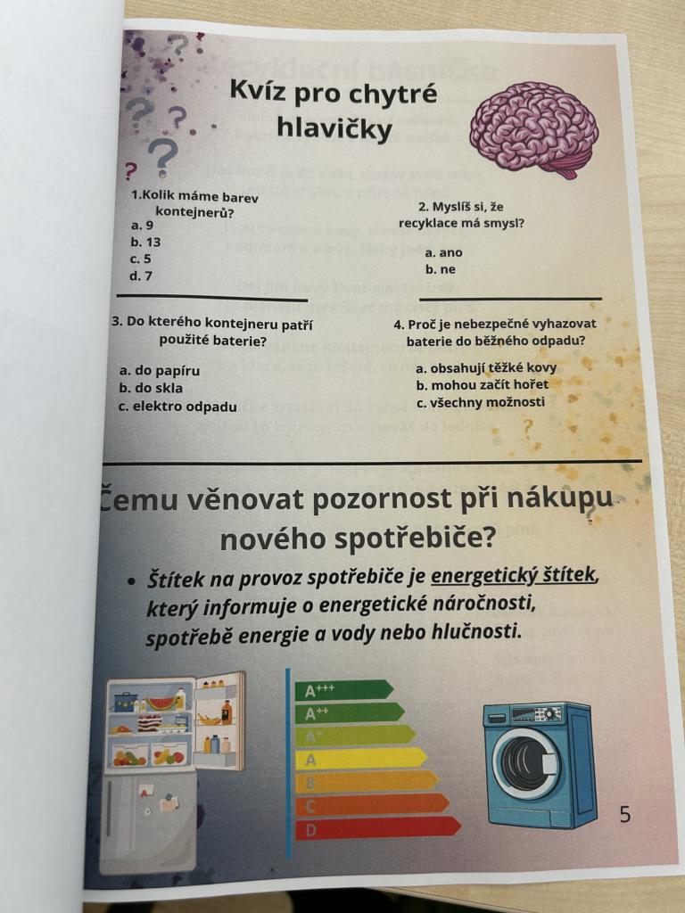 Cílem bylo nejen ověřit jejich znalosti o třídění odpadu, ale také je motivovat k tomu, aby informace předávali dále zajímavou a přístupnou formou. Tentokrát však nešlo o obyčejné psaní článků. Za úkol si dali připravit bulvární zpravodaj, který by čtenáře zaujal hned na první pohled. Během několika hodin práce tak vznikly originální články, ilustrace a infografiky.