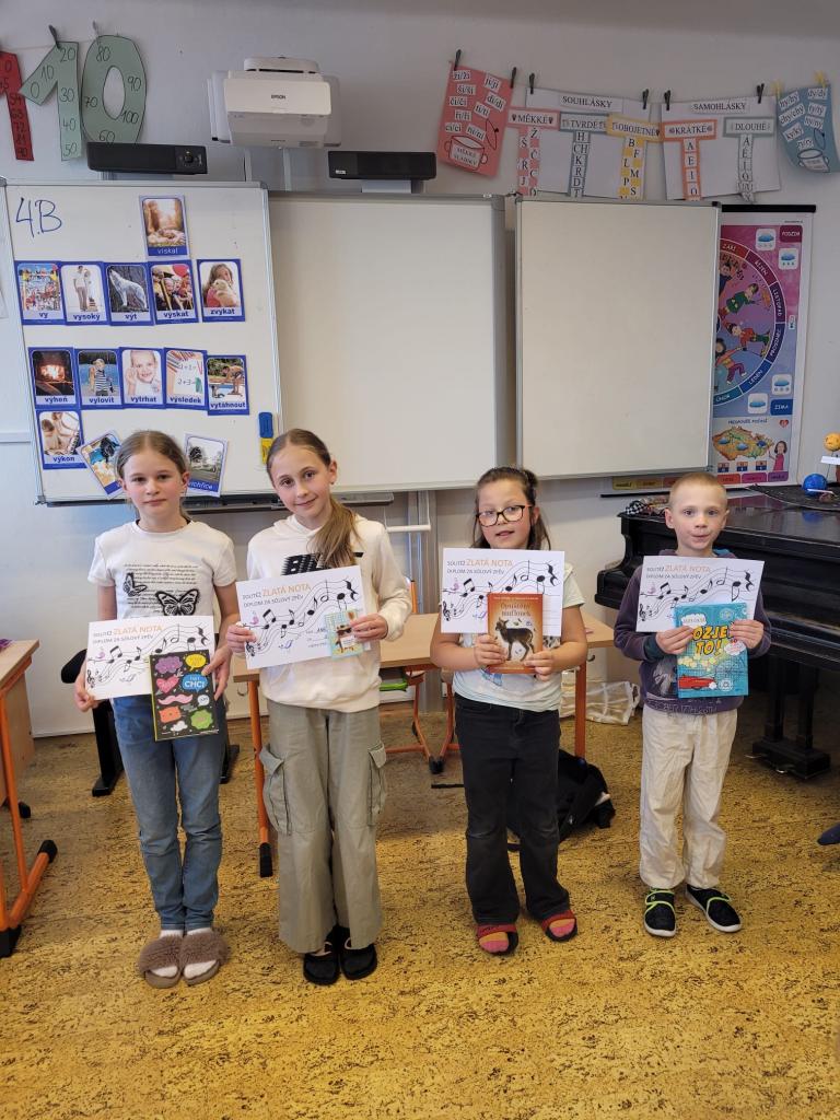V první kategorii soutěžily děti z 1. třídy. Zvítězila Patricie Stejkozová, která nás překvapila krásným čistým hláskem. Na druhém místě byla Adéla Hánová a trojici nejlepších zpěváků doplnil Martin Žáček. Žáci 2. a 3. třídy soutěžili ve druhé kategorii. První místo patřilo Tatianě Turkové, druhý se umístil Václav Kolář, třetí místo obsadila Eliška Plívová. V další kategorii se utkali žáci 4. a 5. třídy. Zlatou notu si vyzpívala Sofie Křivonosková a Jan Vyšín, na druhé příčce se umístila Karolína Ranglová a Sabina Tesková a šestici nejlepších doplnila Linda Jurová a Anežka Vávrová. Z druhého stupně nám krásně zazpívala Markéta Holubová.